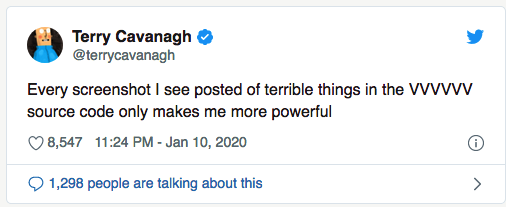 This isn’t the sort of thing that happens often, and by that metric alone, the value of releasing this information is immense. People can learn from it, or improve it. Some of the response to VVVVVV’s source code has been horror, as onlookers pick apart things that could have been written better. Cavanagh maybe foresaw this — in his blog post announcing the release, he admits, “VVVVVV is not a technically sophisticated game! Even by the standards of self taught indie devs, it’s kind of a mess.”